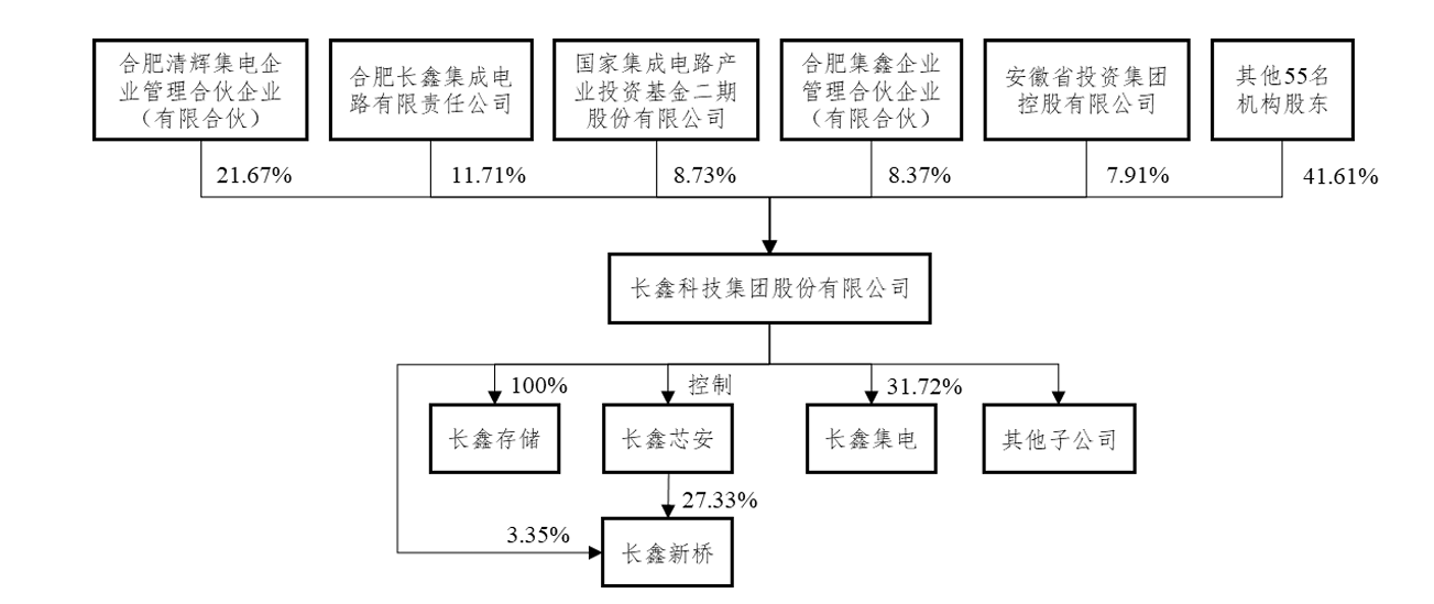 在股权结构方面,合肥清辉集电企业管理合伙企业持股比例21.67%,为长鑫科技第一大股东。国家集成电路产业投资基金二期(大基金二期)、安徽省投资集团、招银国际、人保资本、建信金融、国调基金、君联资本、小米产投等众多知名机构均位列股东名单之中。
