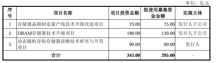 去年12月,上交所官网显示,长鑫科技申报科创板IPO获受理。此次IPO,长鑫科技拟募资295亿元,用于存储器晶圆制造量产线技术升级改造项目、DRAM存储器技术升级项目、动态随机存取存储器前瞻技术研究与开发项目建设,合计总投资规模达345亿元。