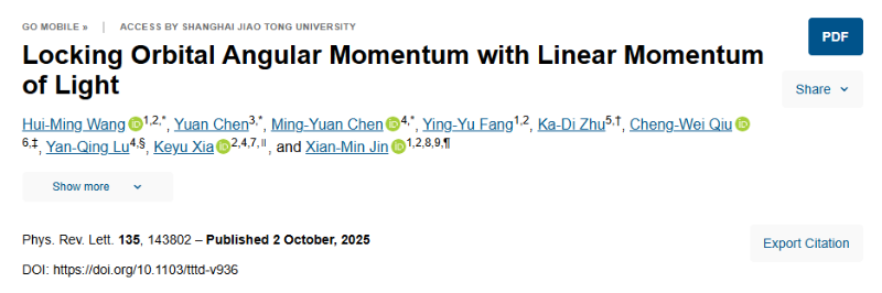 近日,美国物理学权威应用期刊Physical Review Letters上以Locking Orbital Angular Momentum with Linear Momentum of Light为题发表最新研究成果,提出了一种在光子芯片内构建出截面呈阿基米德螺旋的手性波导,首次实现了光的轨道角动量与线动量的“一一锁定”。
