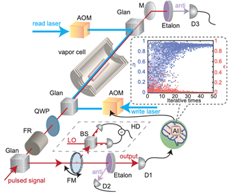 针对这一挑战,该研究团队从光与原子相互作用的基本机制出发,首次揭示了光脉冲时域波形与原子自旋波空间分布之间的汉克尔时空变换映射关系,如图1所示。基于此,团队提出并实验验证了一种智能光控自旋波压缩策略,通过优化控制光脉冲的时域形状,使激发出的自旋波在空间上高度局域化,从而在不增加噪声的前提下显著提升存储效率与保真度。