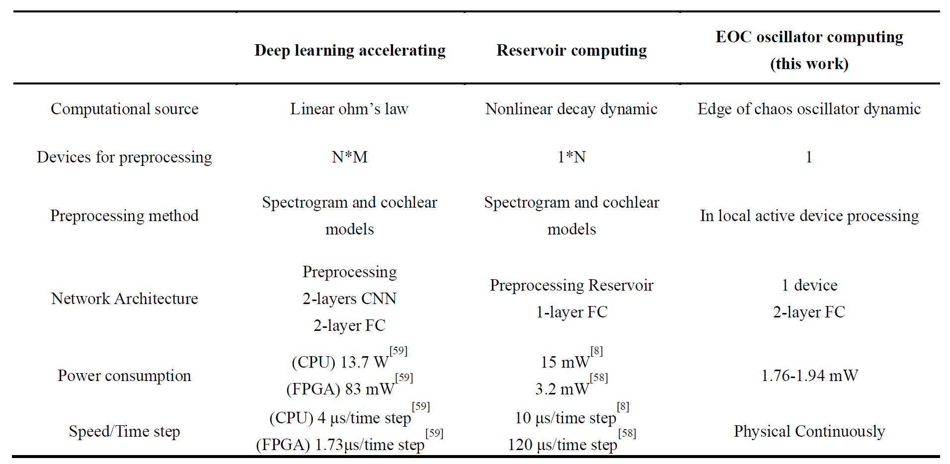 更引人注目的是,团队证明单个在混沌边缘区域工作的VO₂器件具有显著的频率敏感特性,能够直接进行频域特征提取。在语音识别任务中,仅凭单个器件的动力学响应即可实现92%的识别准确率,其性能相当于一个具有频域预处理功能的两层卷积神经网络。这意味着,单个混沌边缘器件可完成传统计算中需大量无源器件才能实现的任务,并额外具备了类似生物耳蜗的语音频域预处理功能。