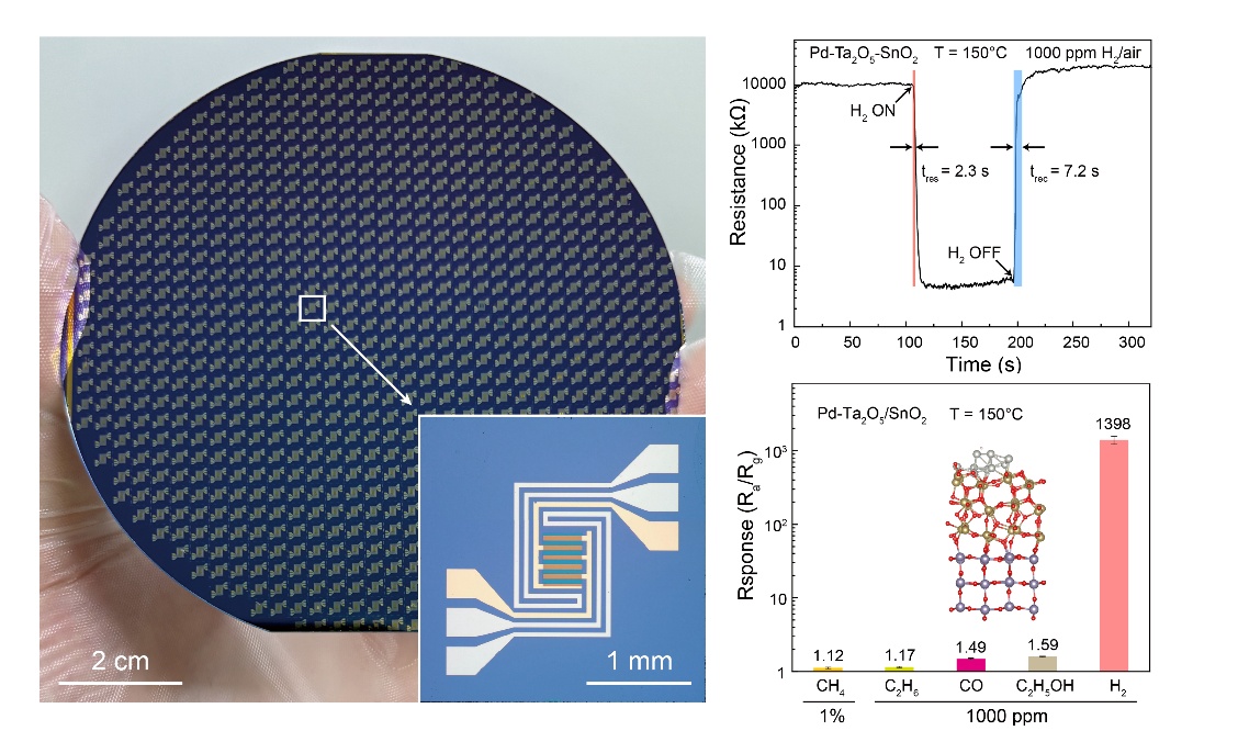 相关成果以“Wafer-scale Pd-decorated $$Ta_2O_5/SnO_2$$heterojunction sensor for ultrafast and sensitive hydrogen detection”为题,发表在《Sensors and Actuators B: Chemical》上。北京大学集成电路学院2022级博士研究生佟峻赫为第一作者,王路达研究员为通讯作者。