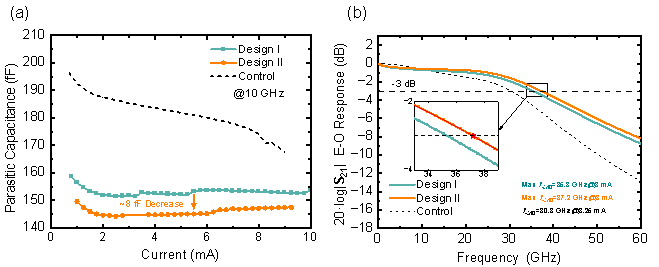 图4:器件直流偏置寄生电容及其电光频率响应性能