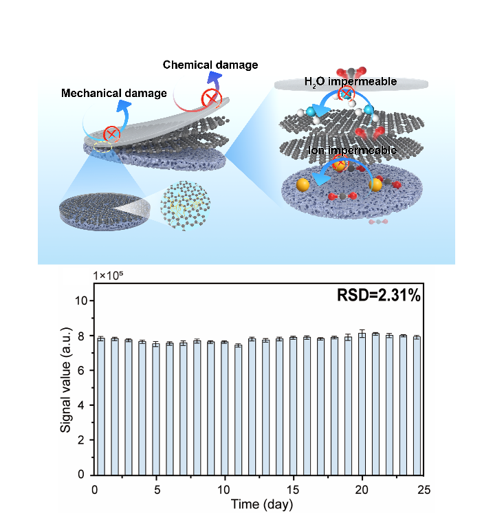 在精密仪器膜式总有机碳(TOC)分析系统中的气–液分离验证实验表明,该纳米孔石墨烯复合膜表现出优于传统聚合物膜的线性响应特性(R² 达 99.9%),并在长达 672 小时的连续运行中保持稳定工作,显著提升了测量可靠性与稳定性。这一成果为纳米孔石墨烯分离膜在水质分析以及其他高端精密仪器中的应用提供了重要技术支撑,有望用于半导体超纯水在线监测,也为基于微米—纳米加工的纳流体器件与 MEMS 的深度融合开辟了新路径。