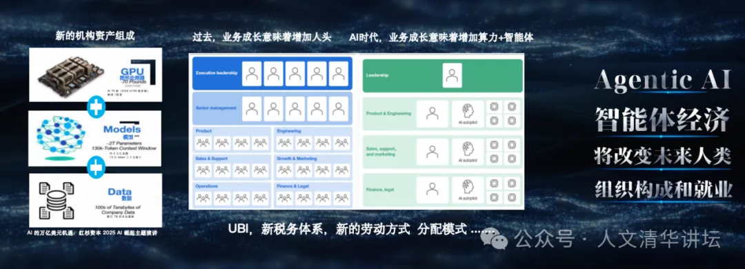 这种智能体经济将彻底改变经济形态、人类组织架构和企业运作模式:企业的核心资产将变为芯片、数据中心、数据和AI模型;团队组建不再局限于招聘人类员工,智能体将成为重要组成部分;就业形态、分配模式等深层次社会问题也将随之重构。