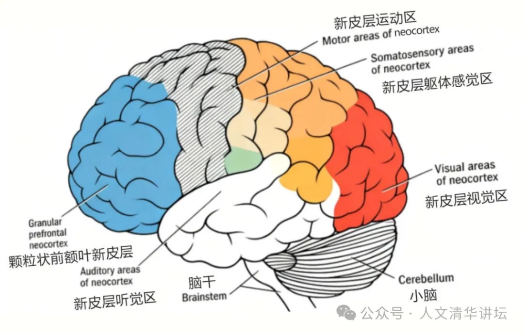 早年间,保罗・麦克莱恩提出了 “三重脑” 理论,将大脑分为不同层次:负责呼吸、睡眠、运动等生理功能的物理层次,处理情感的层次,以及负责推理、决策的高级层次。这个理论虽然不够精准,但为我们理解大脑提供了直观的视角。如今我们知道,大脑拥有一百五十多个不同的功能区,860 亿个神经元分布其中,分别负责声音、视觉、语言、运动等不同功能。