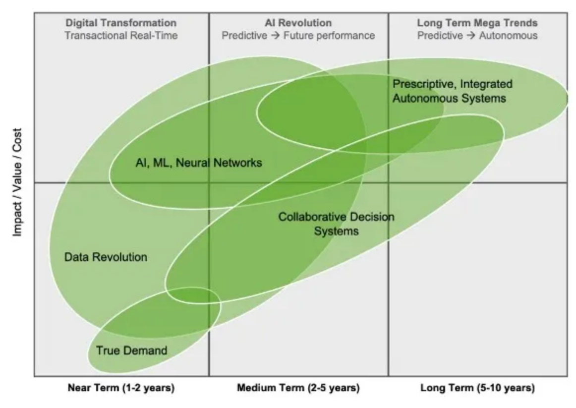 SEMI/麦肯锡的白皮书指出了数字化转型、机器学习、神经网络、协作决策系统和自主流程等解决方案如何影响半导体价值链(见图4)。Weiss表示:“数字化转型,特别是在供应链管理中应用通用人工智能(genAI),无疑很有帮助,仅仅从减轻管理负担的角度来看就是如此。此外,其他一些能力包括内部文件创建和外部利益相关者协调,这实际上涉及层级映射和可见性,以及真正掌握你的供应基础,促进客户互动,报告和税务状态更新,因此,任何可以通过人工智能自动化的事情都可以得到改进和加速。”