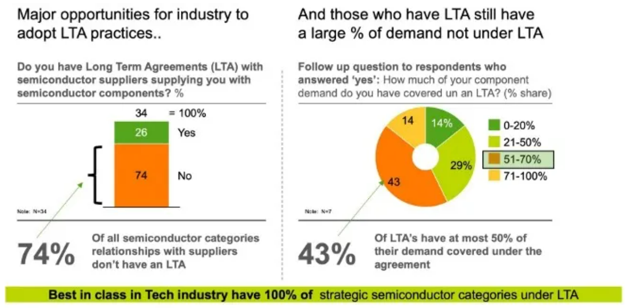 图1:大多数行业参与者不签订长期协议。来源:SEMI半导体短缺调查,2022年春季