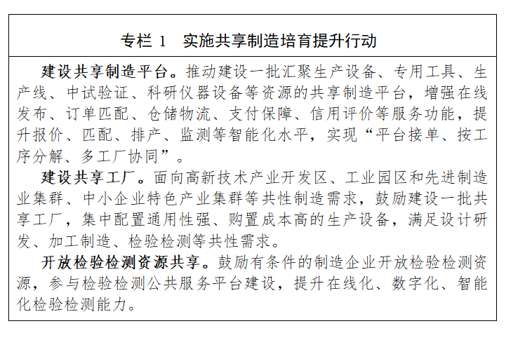 (四)推进标准体系建设。抓好《服务型制造标准体系建设指南》实施,加快建设统一融合、先进适用、覆盖全面、协调配套的标准体系。坚持应用导向、急用先行,强化多元主体协作,开展基础通用、核心要素等基础性标准研制,分行业分领域开展工业设计服务、定制化服务、共享制造等标准研制,加强面向生活和生产的服务型制造融合业态应用标准研究。鼓励团体标准、企业标准等先行先试。做好服务型制造与两化融合、智能制造等领域标准的协调衔接。加强标准宣贯和培训,引导企业主动对标达标,推动标准落地实施。