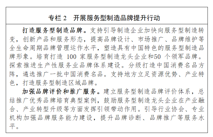 发展知识产权服务。加强商标、专利等多种类型知识产权综合运用,探索完善商标品牌交易价值评估方法,深入开展商标品牌价值评估,分行业分领域打造以科技创新为支撑的服务型制造领军商标品牌。