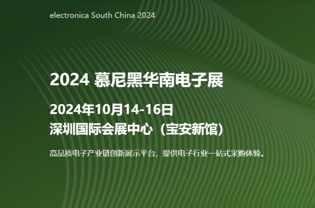 慕尼黑华南电子展(electronica South China)将于2024年10月14-16日在深圳国际会展中心(宝安新馆)举办。本届将聚焦电动车、车规芯片、物联网、AI芯片与智能终端、消费电子、蓝牙技术,储能、三代半、集成电路、传感器、连接器、无源器件、电源与测试测量、PCB等热门电子技术与应用,通过主题展区和技术论坛,从前沿技术到实际应用,为专业观众提供电子领域一站式采购平台。