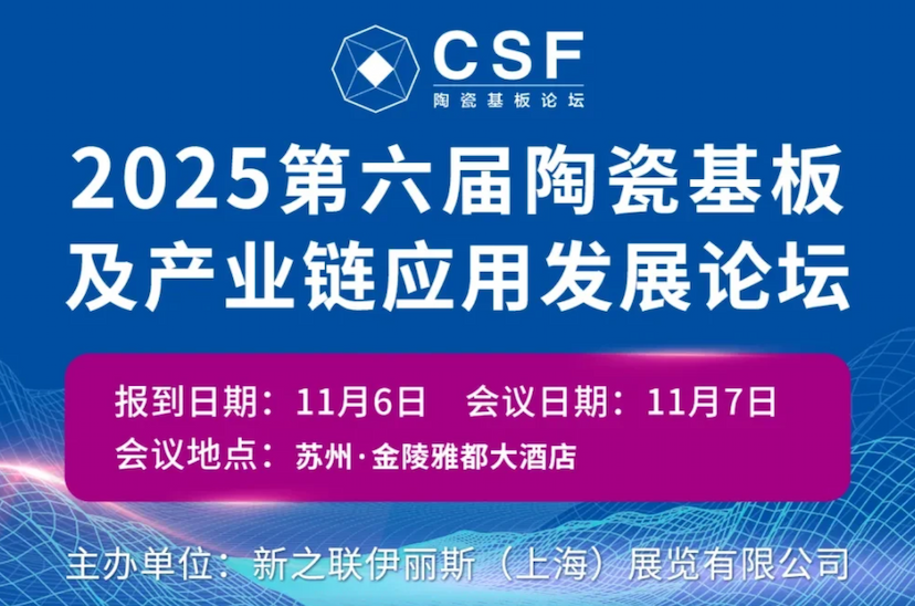 为此,“第六届陶瓷基板及产业链应用发展论坛”将于2025年11月7日在苏州隆重举办!