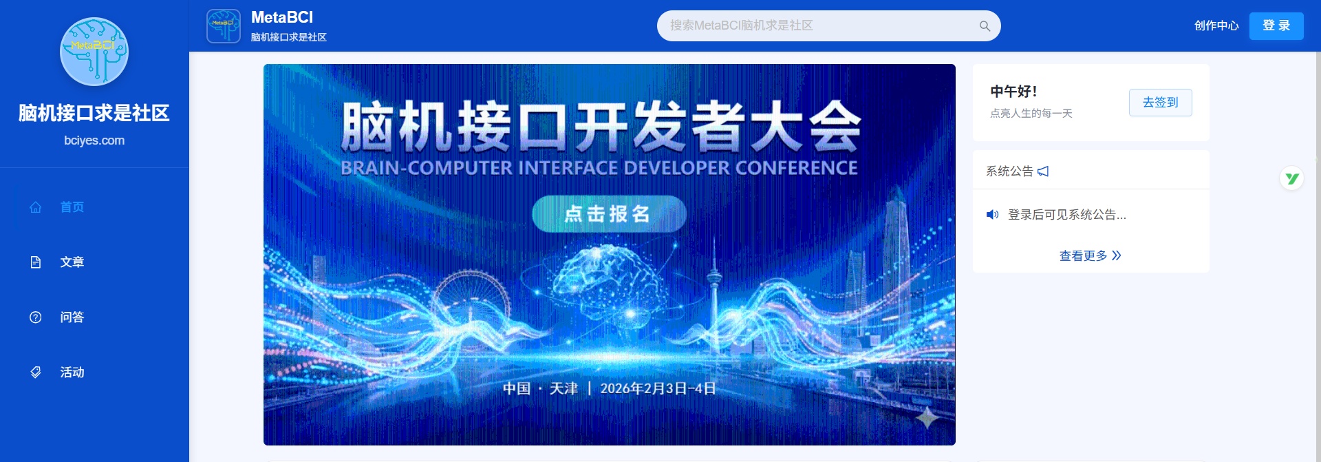 1. 访问官网:进入《脑机求是社区》 https://bciyes.com/