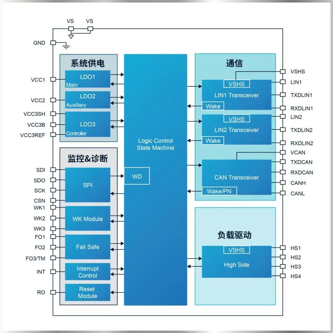 ◆ LIN收发器:支持LIN 2.2协议,兼容ISO 17987-4与SAE J2602标准;