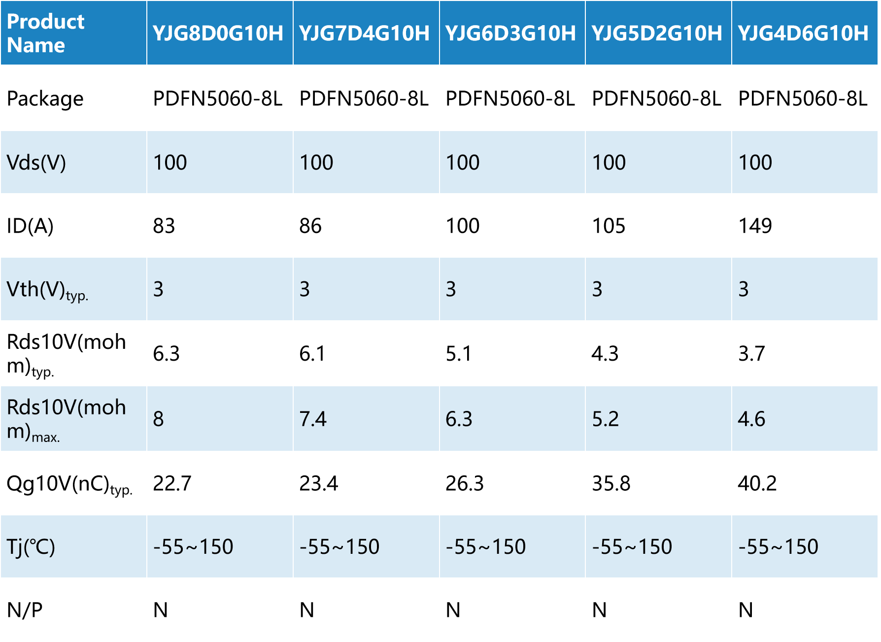 N100V MOSFET产品采用特殊优化的SGT技术,具有较低的导通电阻Rdson和栅极电荷Qg,明显降低导通和开关损耗,同时提升了MOSFET抗雪崩冲击能力。