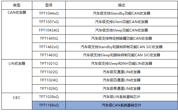 目前TPT1169xQ是国内首款采用全国产供应链且通过多家车厂和Tier1认证并量产的CAN SIC SBC。
