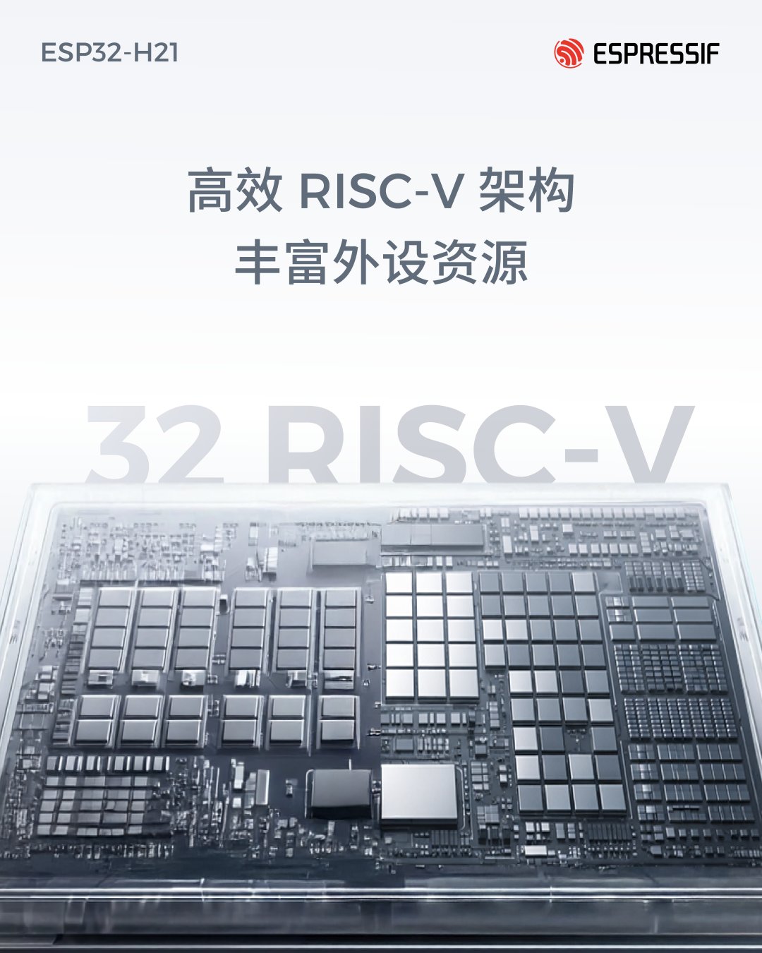 ESP32-H21 采用 32 位 RISC-V 微控制器架构,主频最高可达 96 MHz,具备高效的协议处理能力,并集成丰富的外设资源,支持灵活的系统级集成设计。该 SoC 集成片上存储资源,包括 320 KB SRAM 和 128 KB ROM,并支持外接 Flash 存储器,为应用开发提供更高的灵活性。