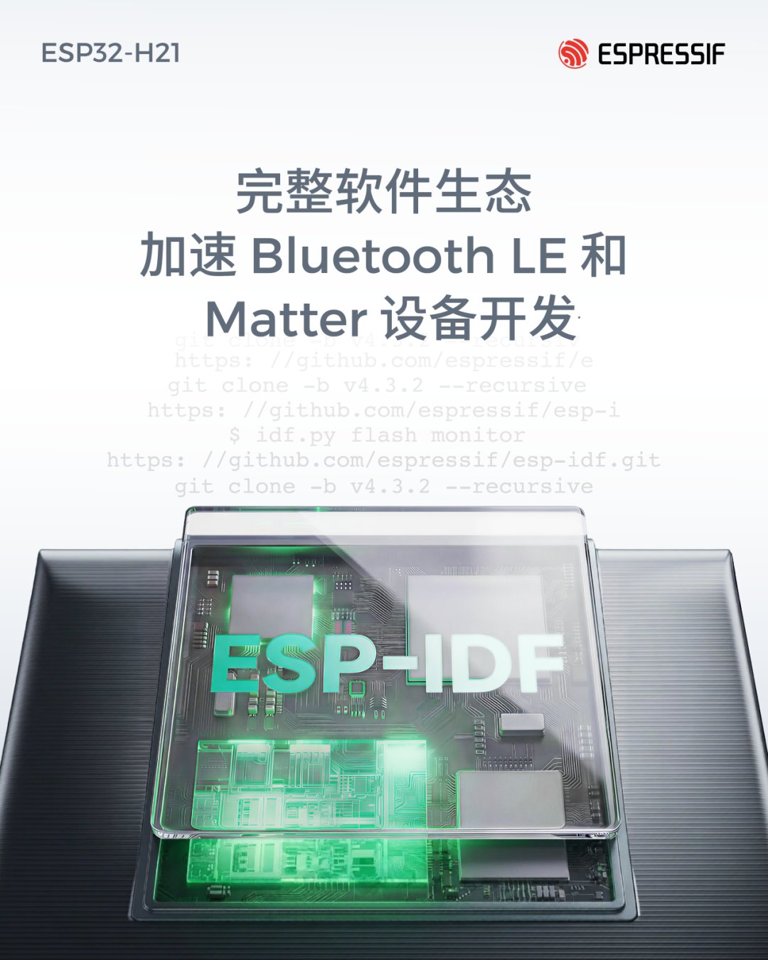 ESP32-H21 完全兼容乐鑫 ESP-IDF 软件开发平台,开发者可复用现有开发工具、软件组件及工作流程,从而加快开发进度并缩短产品上市周期。