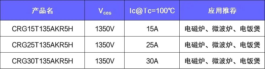 以CRG25T135AKR5H为代表的RC5系列产品均通过严格的可靠性考核,特别在HV_HAST和HV_H3TRB等关键可靠性考核项目中表现出很强的参数稳定性。RC5系列产品可覆盖家用、商用大功率电器应用。